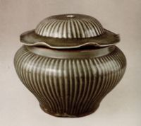 圖片名稱: 龍泉窯青釉條紋荷葉罐