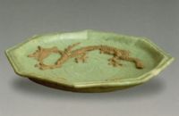 圖片名稱: 龍泉窯青釉堆龍紋八角盤