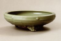 說 明: 大口內(nèi)斂,淺腹圓弧,附三獸形足,釉色多綠中泛黃。