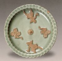 圖片名稱: 龍泉窯青釉露胎帖花云鳳紋盤