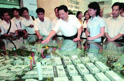 昨天下午,市委書記林元和與禪城區(qū)領(lǐng)導(dǎo)正在察看瓷海國(guó)際陶瓷交易中心的規(guī)劃模型。本報(bào)記者張由瓊攝