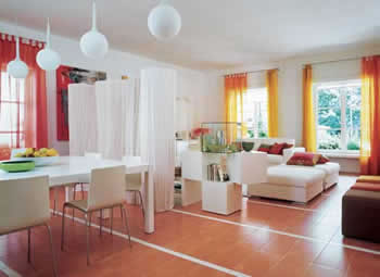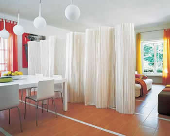 說(shuō)是扇子般的屏風(fēng)可不是指屏風(fēng)“長(zhǎng)”得像扇子,而是它可以像扇子一樣開(kāi)合。它是由一種柔軟打褶的無(wú)紡布材料制成的,除了可以制造出私密的角落效果外,其氣泡結(jié)構(gòu)還可以吸收室內(nèi)噪音。如果買(mǎi)不到一模一樣的成品,我們有很多方法可以替代它:在相對(duì)的兩面墻上打孔,中間拉上繩子并在上面掛上簾子,簾子的圖案顏色可以根據(jù)個(gè)人喜好選擇;或者使用一個(gè)可收縮的木制長(zhǎng)棍,上面裝飾照片或畫(huà)片,也別有新意。