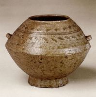 說 明: 原始青瓷。器表涂青黃釉,釉薄而晶亮,釉下紋飾清晰可見。
