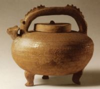說 明: 原始瓷器。通體涂有一層豆褐色薄釉。