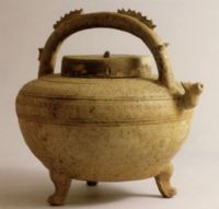 說 明: 原始瓷器。通體涂有一層青褐色薄釉。