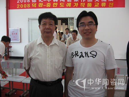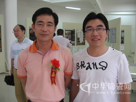 中國工藝美術(shù)大師蘇清河(左)、中華陶瓷網(wǎng)副總經(jīng)理蘇世偉(右)合影