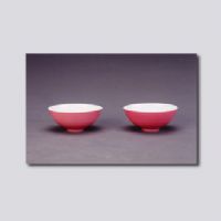 此碗是雍正時燒造的名貴品種,其釉色酷似胭脂而得名,又稱"胭脂紅"。因是將金水融入釉中,又叫"金紅釉"。胭脂水釉器一般胎體極薄,器里施純凈的白釉,在器物口沿處露出一道白色的邊,內(nèi)外相襯,愈發(fā)顯出胭脂色的嬌艷。