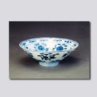 首都博物館藏?,斜壁,圈足。內(nèi)外均繪折枝花及象征吉祥的石榴、仙桃、荔枝、枇杷等果實(shí)。足壁為卷草紋。外底書(shū)有“大明宣德年制”6字楷書(shū)款。青花色澤濃麗,胎質(zhì)堅(jiān)硬,為景德鎮(zhèn)官窯中的佳品。