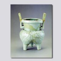圖片名稱: 景德鎮(zhèn)窯青白釉饕餮紋雙耳三足爐