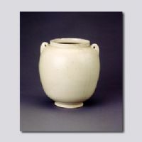 首都博物館藏。直口,短頸,豐肩,鼓腹,圈足,肩兩側(cè)飾對稱單系。通體施白釉,釉面瑩潔光潤,胎體潔白,造型豐美。