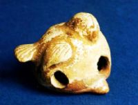 青瓷塤作鳥形,似小憩之姿,背上有一吹孔。最早的塤源于古代先民的狩獵工具——石流星(一種球形飛彈),后來逐漸用陶土燒制而成,以模擬禽鳥鳴聲,作為誘捕的工具,經(jīng)過長期的演進(jìn)發(fā)展,才成為古代的一種樂器。塤有陶制、石制和骨制等,以陶制最為普通,青瓷鳥塤少見。