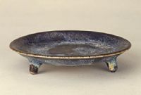 圖片名稱: 郟縣窯黑釉藍(lán)斑三足盤