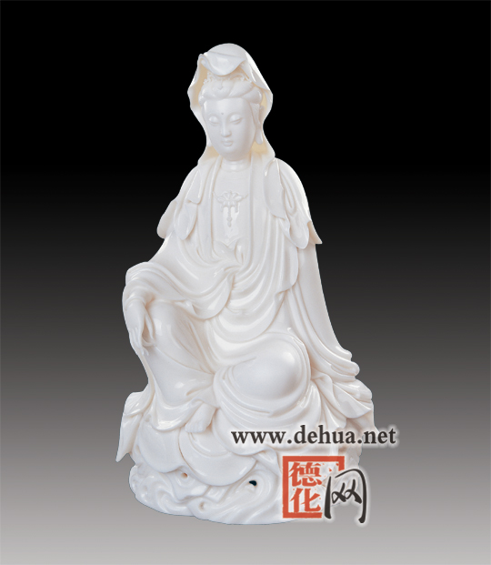 賞析:作品系仿“何來(lái)觀音”的上乘之作。作者在繼承何朝宗觀音瓷雕工藝的基礎(chǔ)上,結(jié)合德化“玉脂瓷”燒制工藝,使得整個(gè)作品表面濕潤(rùn)如玉,造型栩栩如生。