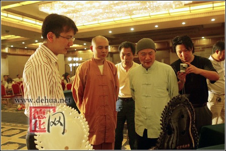 參加拍賣會(huì)的人士觀看少林瓷佛像