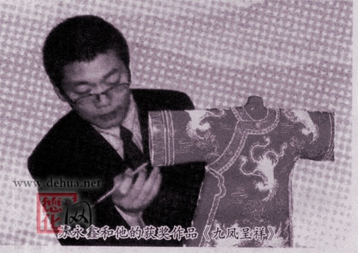 蘇永鑫是福建德化人,1972年出生。他從小就對書畫、雕塑感興趣,16歲師從福建省高級工藝美術(shù)大師邱雙炯,開始陶瓷學藝生涯。獨立的思想和高度的熱忱,使他盯準漆線雕工藝。從學徒到技師,他立志把德化陶瓷藝術(shù)推向一個新的高峰。他獨自一人來到漆線雕的產(chǎn)地廈門闖蕩,師從臺灣知名工藝師專攻漆藝。以他自己年輕時精通的雕塑技藝融入漆線雕的精雕細琢的同時,又不辭辛苦奔波于閩南各地,挖掘、繼承漆線雕這一優(yōu)秀的民族文化的藝術(shù)奇葩,拓寬了創(chuàng)作領(lǐng)域的空問,終于結(jié)出了累累碩果。其開創(chuàng)的新藝術(shù)品種曾被國內(nèi)多家知名禮品公司作為參賽作品在全國美術(shù)大賽中獲獎,并作為國賓禮品饋贈外國友人。