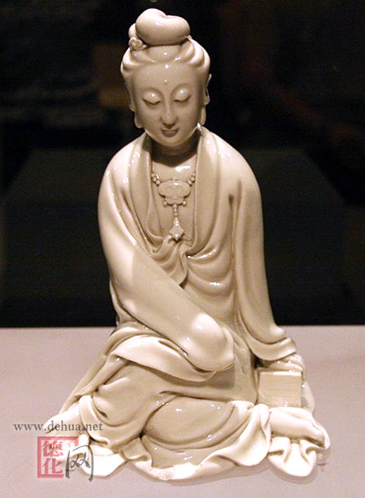 選自天津市博物館的德化窯明代觀音坐像,系“瓷圣”何朝宗經(jīng)典之作。組織方對該件展品的介紹如下:
