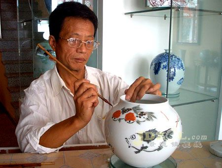 近來,關(guān)于景德鎮(zhèn)傳統(tǒng)技藝之一的古彩話題頗熱烈:陶藝大家周國幀先生多番呼吁,古彩技藝瀕臨失傳危險(xiǎn),必須高度重視大力搶救;古彩傳人之一的藍(lán)國華先生也持同論,并道出古彩陷于危境的諸多原因。為此,筆者特地又走訪了現(xiàn)代古彩宗師(已故)段茂發(fā)的嫡傳孫子、陶藝家段慶新先生。正在中國陶瓷城一家畫室畫古彩作品的段先生,十分感慨地向我介紹了當(dāng)代古彩及有數(shù)的幾個(gè)傳人的現(xiàn)狀。