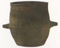 泥質(zhì)灰陶,輪制成型。直口,深腹,平底。腹外對裝二柄,便於使用。內(nèi)底戳印一“麇"字,當(dāng)是倉麇用量。經(jīng)測試,可容小米兩萬毫升,其容量與齊國一釜相當(dāng)。此器不論是屬春秋晚期或戰(zhàn)國,都是中國早期量器的實物標(biāo)本。