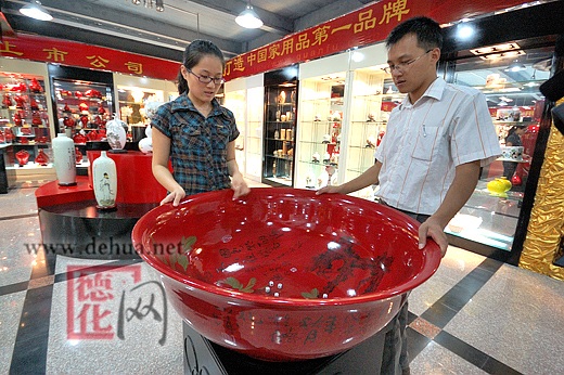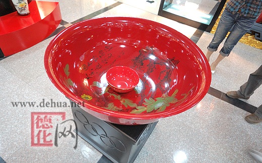據(jù)公司設(shè)計(jì)師江增龍介紹,大碗以傳統(tǒng)手拉坯工藝制作,采用國畫工筆重筆瓷繪,選擇極富燒成難度卻深喻吉祥喜慶色彩的高溫紅釉瓷,無論在手拉坯制作、瓷繪工藝還是燒成難度上,都是德化制作大平面瓷的一項(xiàng)技術(shù)挑戰(zhàn)。該大碗的成功燒制,表達(dá)了瓷都人民對共建和諧和美和樂的大家庭、共享現(xiàn)代化美好生活的祝福與愿望,豐富了節(jié)日生活,弘揚(yáng)了閩南文化。