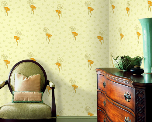 潮流總是起起落落,今年,略帶現(xiàn)代元素的民族風(fēng)情再度成為潮流的寵兒。“祥云”以質(zhì)樸的泥土基調(diào)為主色調(diào),配以極富中國(guó)民族風(fēng)情的精致手工刺繡,讓云朵、花草回歸自然般的在墻面上輕舞,猶如置身于納西族村寨中,聆聽山歌回蕩;淺金色的鈴鐺花刺繡,令人清心爽目,寧?kù)o、幽雅、淡泊的感覺油然而生;鑲有珍珠的繡花圖案,整齊散落在珠光銀白基調(diào)的墻紙上,剔透晶瑩,洋溢著東方式內(nèi)斂而純潔的浪漫情懷。