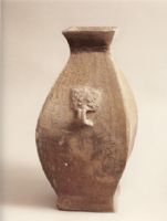 方口平唇,鼓腹,假圈足底。腹部有兩個鋪首耳。鈁是西漢中期以前江浙一帶的一種仿青銅器制品,在墓內(nèi)往往與同是仿青銅器的鼎、敦、壺、瓿形成組合,至西漢后期基本消失。