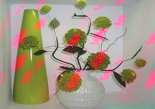 黃白,高矮的花瓶透露著和諧,婀娜的枝干開出朵朵芬芳,橙色的花瓣把純白的空間渲染得空曠而賦予感染。
