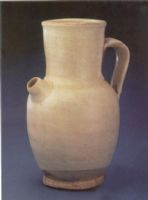 壺口微撇,直頸,溜肩,肩以下漸瘦,淺圈足,足外撇,一曲柄連于頸腹之間,與其相對,肩部安一短流。通體施白色釉,內(nèi)部施釉至肩,外部施釉不到底。