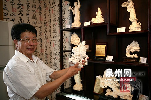 當(dāng)時(shí)作為德化瓷廠的工人是值得顯擺的事情,佩戴上瓷廠的胸章,工友們都覺得很自豪。然而經(jīng)過深思熟慮,蘇清河在親戚、朋友的一片反對聲中辭職離開了瓷廠。時(shí)年22歲的蘇清河和另外一名師兄一起,走南闖北雕塑佛像。