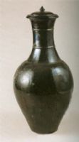 敞口圓唇,粗長頸,溜肩鼓腹,腹下內(nèi)收較大,小平底,火珠鈕廣沿蓋。