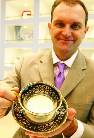 這位專程到蘇的“老外”,是英國陶瓷之父JosiahWedgwood的第八代傳人。已有近 250年歷史的英國Wedgwood是國際居家精品的領導品牌,其代表產(chǎn)品陶瓷餐具一直被歐洲皇室貴族等選用。美羅商城是其在內(nèi)地市場開設的第19家專賣店,也是其在江蘇市場開設的首家專賣店,上柜產(chǎn)品包括杯碟、咖啡壺、花瓶等20余個品種的高檔瓷器。“這套1.3萬元的茶杯碟是Wedgwood中的頂級精品,目前在全國市場不超過10套”,據(jù)介紹,Wedgwood不少品種都由歐洲能工巧匠手工制作,售價高達1.3萬元的牡丹形茶杯碟制作時間長達1個月,共要燒制12次,上面的金粉彩繪采用24K金為原料,每只杯碟的彩繪都需工匠繪制1000余筆才能完工。
