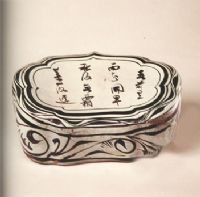 圖片名稱: 磁州窯白地黑花如意頭開詩文枕
