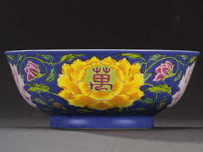 (雍正御制琺瑯彩藍(lán)地纏枝牡丹紋“萬(wàn)壽長(zhǎng)春”碗 )
