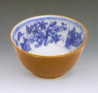 圖片名稱(chēng): 外醬釉?xún)?nèi)青花山水花卉紋小碗