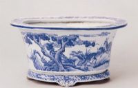 圖片名稱: 青花鶴鹿圖橢圓花盆