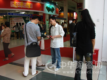 中華陶瓷網(wǎng)工作人員在現(xiàn)場向客商介紹及發(fā)放《陶瓷之路》期刊等相關(guān)資料