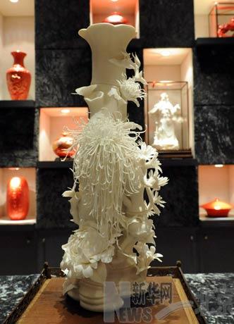 這是北京“富貴紅”專賣店里與“富貴紅”相媲美的白色花瓶(11月14日攝)。