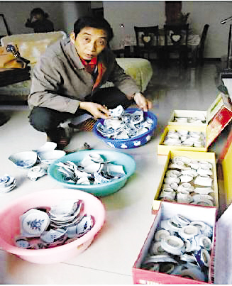 開縣一名姓嚴(yán)的收藏家介紹稱,居民把這些碎瓷片弄回家后洗干凈,用麻袋裝起來放在客廳或院壩里,當(dāng)有人來買時(shí),除了保存較完整的瓷片以單片出售外,其余的一般以每斤5元的價(jià)格打包出售,有時(shí)運(yùn)氣好的居民一天可以掙200多元。嚴(yán)某還稱,他們買回家后,再慢慢分類清理,能修復(fù)的就盡量修復(fù),以顯其文物價(jià)值。