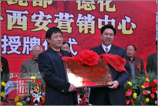 德化瓷向以白瓷著名,被譽(yù)為“東方藝術(shù)”、因而“天下共寶之”。 德化瓷塑以中國白為材質(zhì),瓷塑造型、技藝、材質(zhì)、釉色、燒制技藝自成特色。為進(jìn)一步解讀、詮釋當(dāng)代德化瓷藝術(shù)經(jīng)典,促進(jìn)德化瓷藝術(shù)的傳承、創(chuàng)新和發(fā)展。經(jīng)精心籌備,中國瓷都·德化——迪云州陶瓷西安營銷中心,于11月15日在西安正式授牌,開業(yè)迎賓。這是瓷都德化精品陶瓷的集中全面展示,也是德化與西安兩地?cái)y手合作、共促發(fā)展的一個(gè)良好的窗口。
