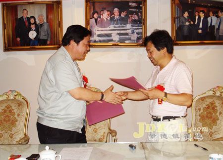何炳欽(右)出席景德鎮(zhèn)日用陶瓷產(chǎn)品創(chuàng)新設(shè)計(jì)大賽冠名簽約贊助儀式