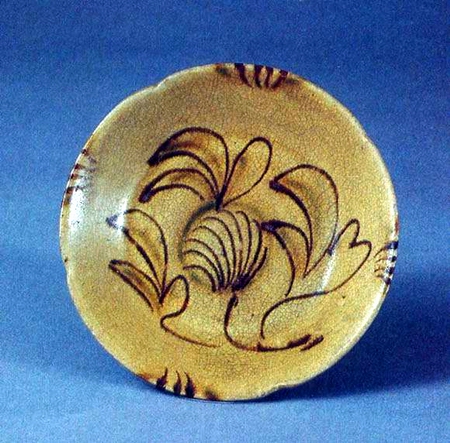 唐長沙窯釉下彩繪瓣口盤