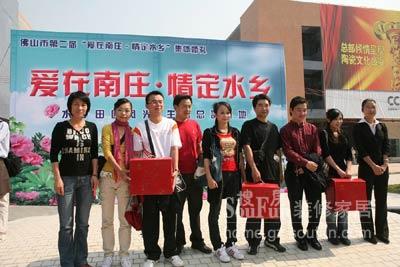 2008年11月16日,佛山市第二屆"愛在南莊·情定水鄉(xiāng)"集體婚禮--水鄉(xiāng)田園風(fēng)光·生態(tài)總部基地在中國陶瓷產(chǎn)業(yè)總部基地現(xiàn)場圓滿舉行。數(shù)十對(duì)新人,南莊鎮(zhèn)黨委委員王斌,南莊鎮(zhèn)宣傳辦主任徐錦棠,南莊鎮(zhèn)文化站站長甘小平等領(lǐng)導(dǎo),陶瓷藝術(shù)家工藝美術(shù)師、佛山市工藝美術(shù)家創(chuàng)作院副院長黃強(qiáng)華,中國陶瓷產(chǎn)業(yè)總部基地相關(guān)負(fù)責(zé)人,以及眾多媒體參加了此次活動(dòng)。此外,活動(dòng)還吸引了慕名前來的80多位攝影愛好者的熱情參與。