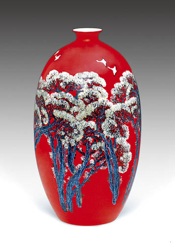 經(jīng)過多年探索,中國(guó)工藝美術(shù)大師、景德鎮(zhèn)陶瓷館副館長(zhǎng)寧勤征在高溫窯變顏色釉創(chuàng)作中,終于收獲了創(chuàng)新的喜悅。最近他創(chuàng)作的一批高溫中華紅釉作品,除令觀者“驚艷”外,還作為當(dāng)代中國(guó)藝術(shù)陶瓷具有創(chuàng)新意義的代表性展品,屢屢走出國(guó)門。如,2007年他的高溫中華紅釉作品被文化部、外交部作為國(guó)家珍寶選送參加了“中俄文化年”活動(dòng),在俄羅斯各大城市巡回展出;今年,其作品又被文化部、外交部選送至巴林王國(guó)展出。