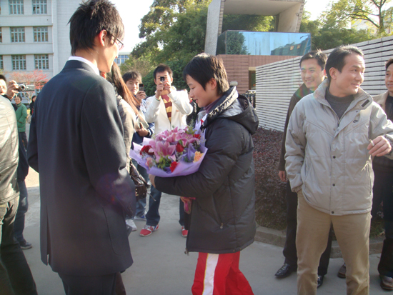 陶瓷學(xué)院學(xué)生代表向吳靜鈺敬獻(xiàn)鮮花