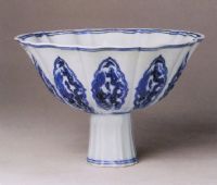 圖片名稱: 青花龍鳳紋葵瓣式高足碗
