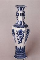 圖片名稱: 青花龍壽紋螭耳六方瓶