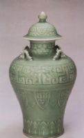 圖片名稱: 豆青釉凸蕉葉紋四系蓋罐