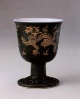 圖片名稱(chēng): 黑釉描金云龍紋高足杯