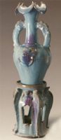 圖片名稱: 鈞窯天藍釉貼花獸面紋雙耳連座瓶