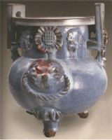 圖片名稱: 鈞窯天藍(lán)釉紅斑貼花雙耳三足爐