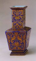 圖片名稱: 灑藍釉描金勾蓮紋斜方瓶